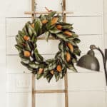 I used the Magnolia Wreath on a vintage ladder beside my desk.